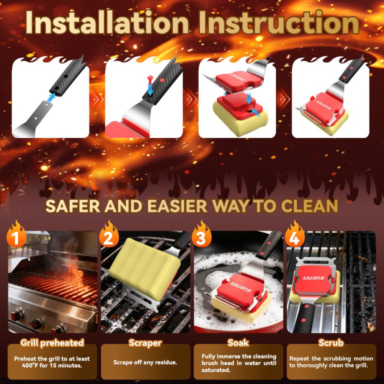 SODITER Grill Brush Bristle Free with Cleaner Scraper,Steam Grill Brush for Outdoor Grill,Replaceable Head Barbecue Grill Safe Cleaner Brush,Seamless-Fit Cast Iron/Stainless-Steel Grates(two brush heads).