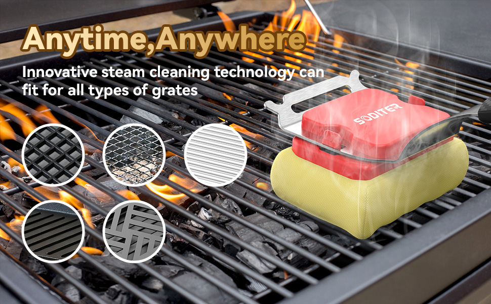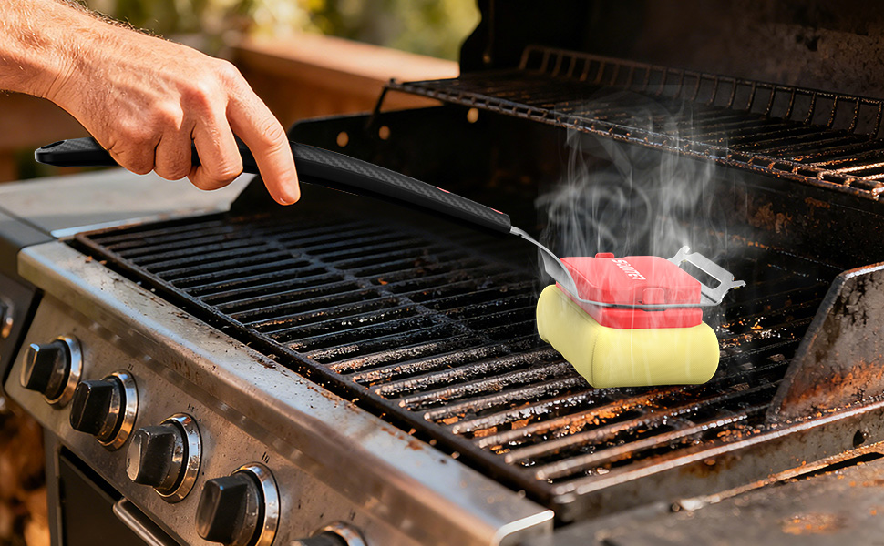 【 Bristle-Free Steam Cleaning Brush】: The upgraded BBQ steam brush uses heat-resistant aramid fiber. High-temperature steam easily melts away dirt. Unlike traditional bristle brushes, it contains no dangerous steel wire bristles or sharp points that will break and get into food, nor will it leave any scratches on the grill. Ensuring food safety.