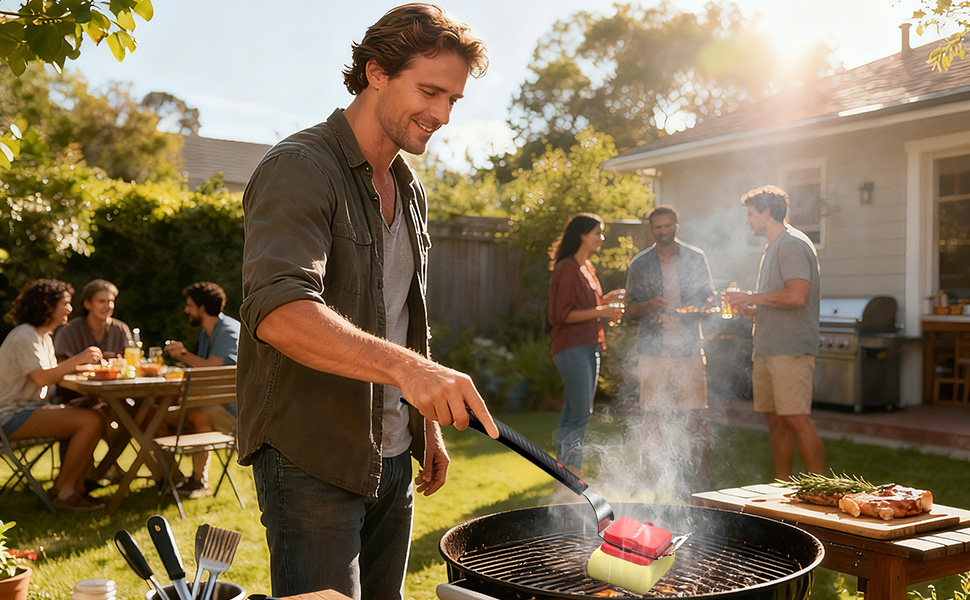 【 Upgraded Brush Head Locking System】:We use an innovative locking mechanism that solves the common problems of brush heads falling off and clips breaking in other BBQ brushes. This mechanism ensures the brush head is firmly fixed to the handle; simply slide the clip to easily install or remove it. Cleaning and replacement are very convenient.